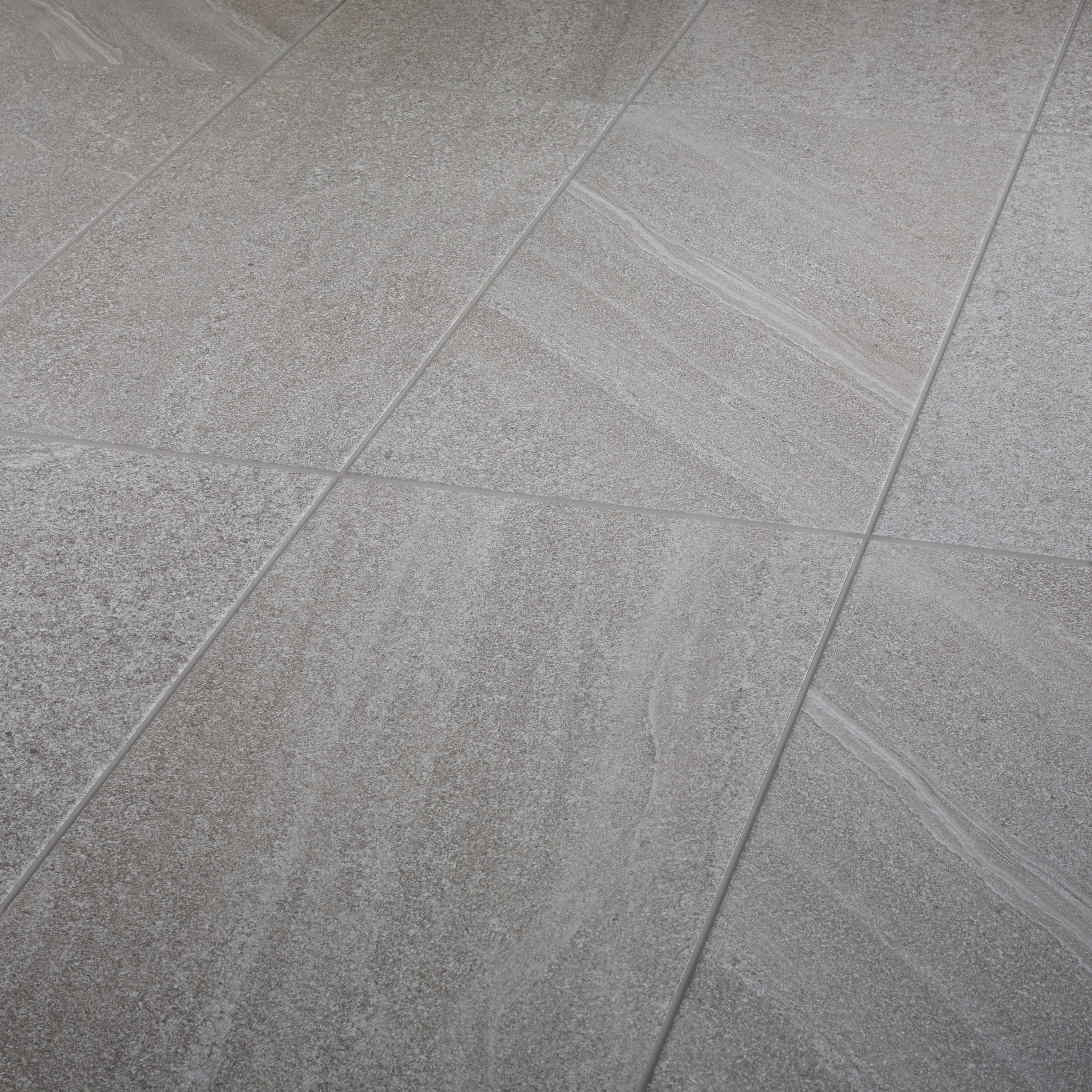 English Greige Satin Stone effect Porcelain Floor tile, Pack of 6, (L